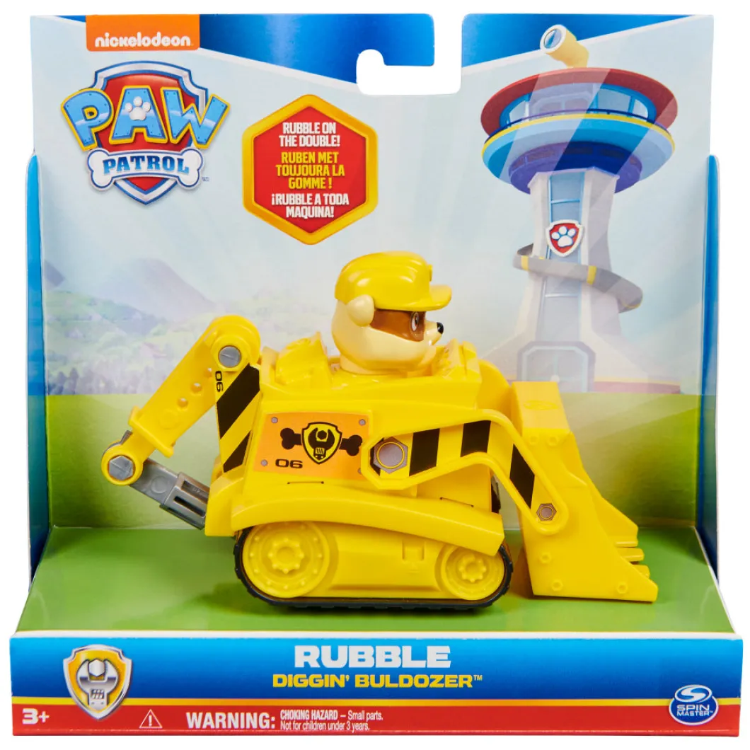 Rubble ayuda donde puede con su Excavadora. Con detalles realistas y ruedas funcionales, la excavadora está lista para emocionantes misiones de rescate. Con uniforme, gorra y placa de Paw Patrol, Rubble está listo para entrar en acción y salvar el día en Adventure Bay.