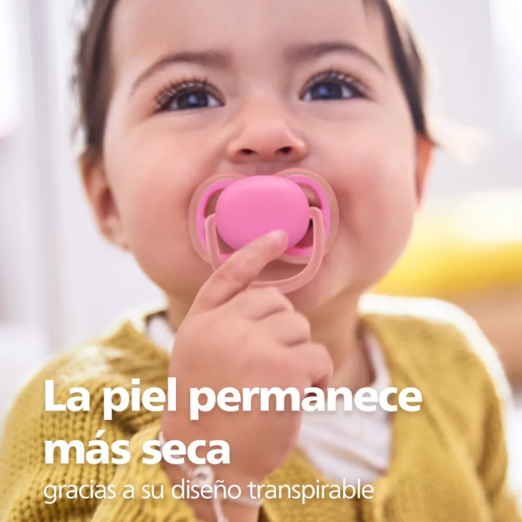 Tranquilice a su bebé con un chupete que permite que su piel respire. La colección ultra air de Philips Avent tiene orificios de gran tamaño para mantener la piel seca. Su cubierta liviana está diseñada para un flujo máximo de aire. Está disponible en varios colores y diseños.