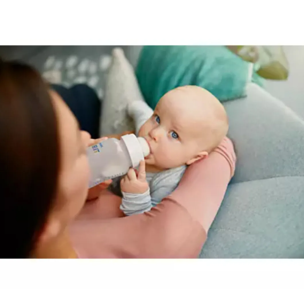 Con su cuello ancho y menos piezas, nuestro biberón es más fácil de armar y limpiar de forma rápida y minuciosa.