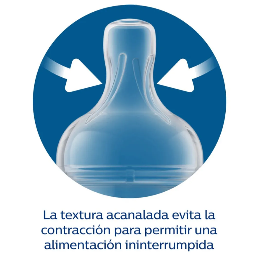 La tetina texturizada y el sistema de válvulas anticólicos de los biberones se diseñaron para reducir las interrupciones en la alimentación y la sensación de incomodidad. Gracias a su válvula anticólicos integrada, el aire circula por el biberón y evita que entre a la pancita del bebé.
