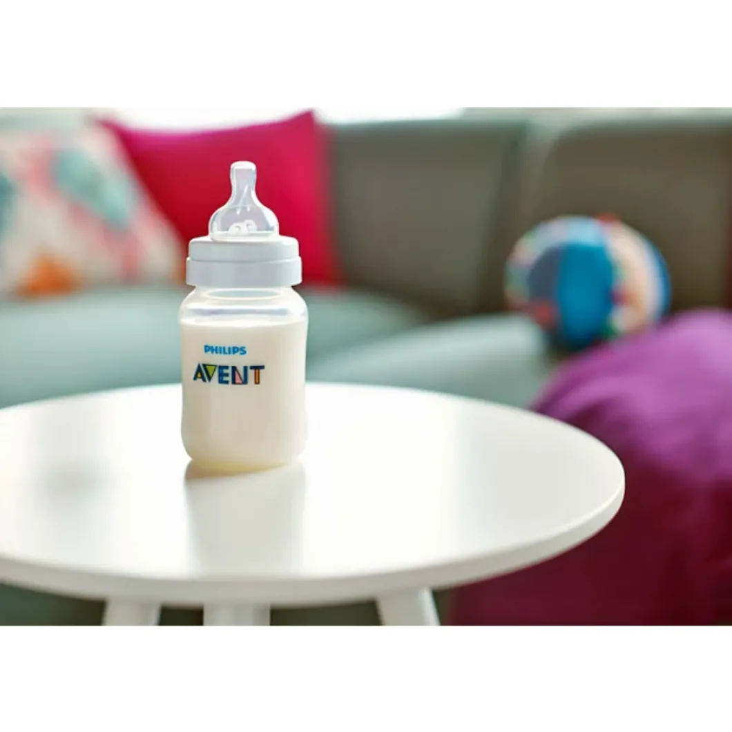 Nuestra válvula anticólicos está diseñada para evitar que el aire llegue a la pancita de su bebé, y así reducir los cólicos y las molestias*. Mientras el bebé se alimenta, la válvula integrada en la tetina se flexiona para que el aire entre en el biberón y así evitar la acumulación de vacío, y lo dirige hacia la parte posterior del biberón. Mantiene el aire alejado de la pancita del bebé para ayudar a reducir los cólicos y las molestias.