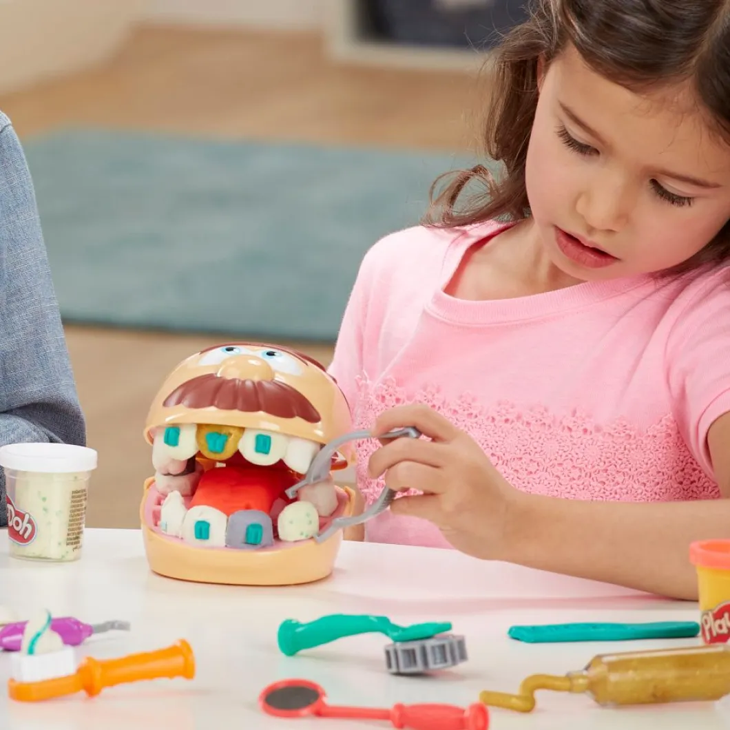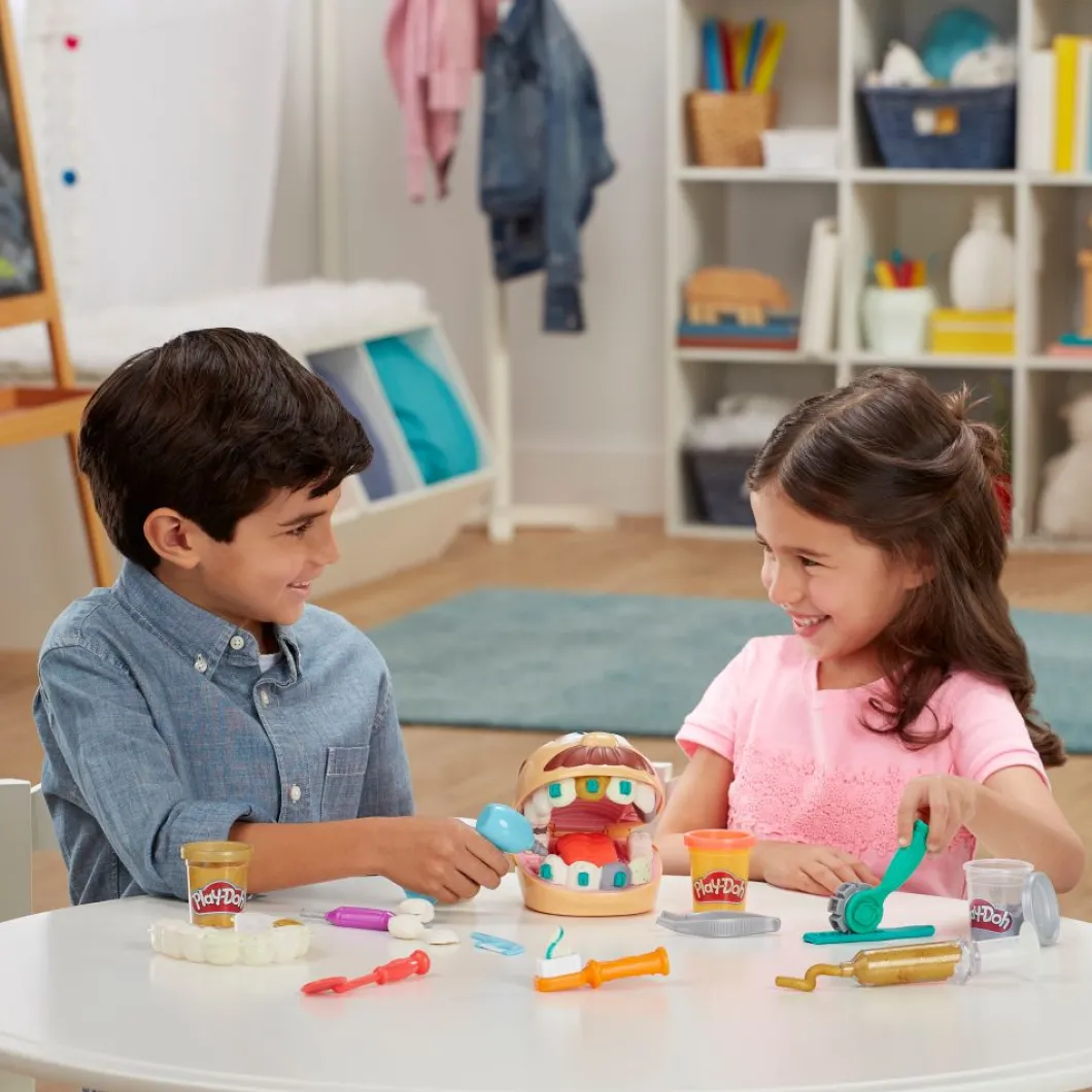¡Ir al dentista nunca había sido tan divertido! ¡Con la masa Play Doh y tu imaginación, Crea sonrisas divertidas con el nuevo dentista divertido de Play-Doh! Crea dientes con caries con confeti de plastilina y elimínalos con Usa el estruendoso taladro eléctrico para taparla!. Colóquese un aparato ortopédico de metal, dientes de oro y mantenga limpios los dientes del paciente. ¡Y que no se olvide del cepillado! ¿Puedes hacerla sonreír mejor?