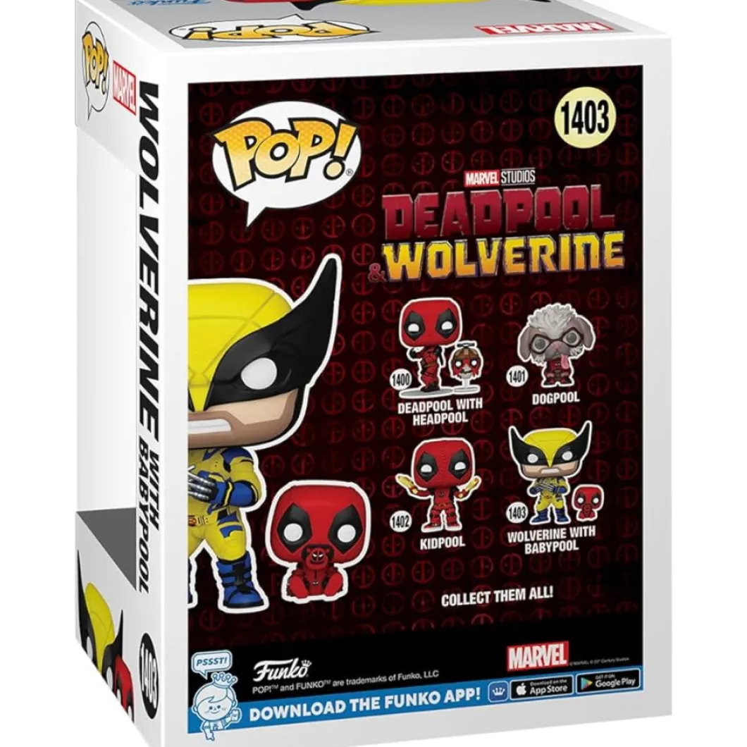 ¡Pop! Wolverine está aquí para fortalecer tu alineación de superhéroes, con la ayuda de Pop! ¡Babypool! ¡Crea un lugar en tu colección Deadpool & Wolverine de Marvel Studios para este mutante y mini-pool como este Pop! & Buddy dúo con Pop! Wolverine y Pop! ¡Babypool!