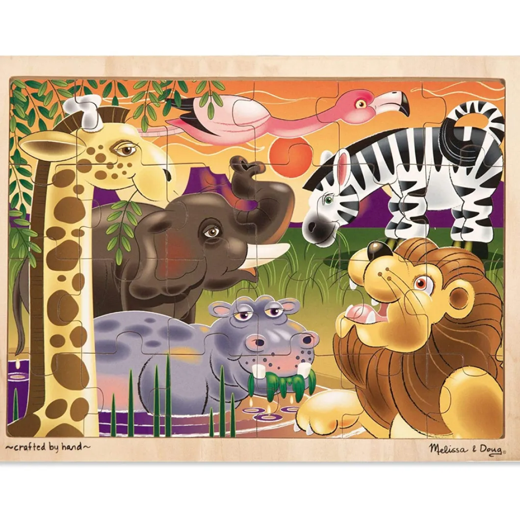 Puede que el sol se esté poniendo en la sabana, pero este rompecabezas de madera de 24 piezas ofrece una diversión única en cualquier momento del día.