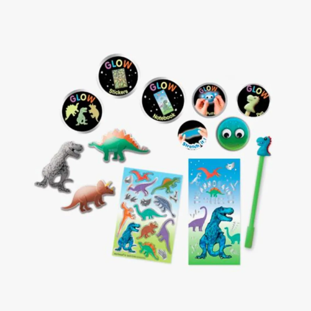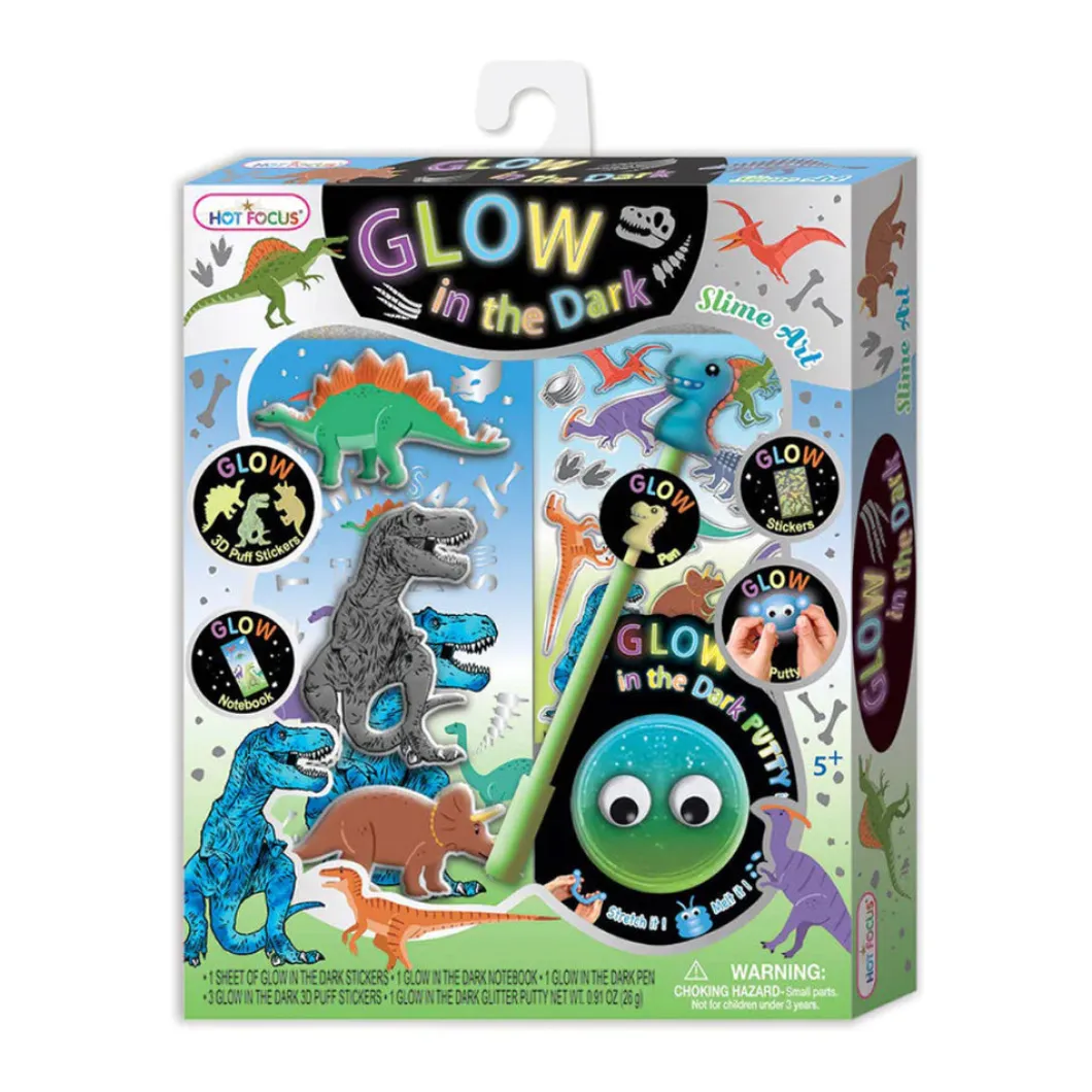 ¡El set perfecto para nuestros amantes del arte y los dinosaurios! Disfruta de este juego que brilla en la oscuridad que incluye pegatinas 3Dpuffy y una libreta. pegatinas de vinilo, bolígrafo y masilla. ¡Todo brilla en la oscuridad!
