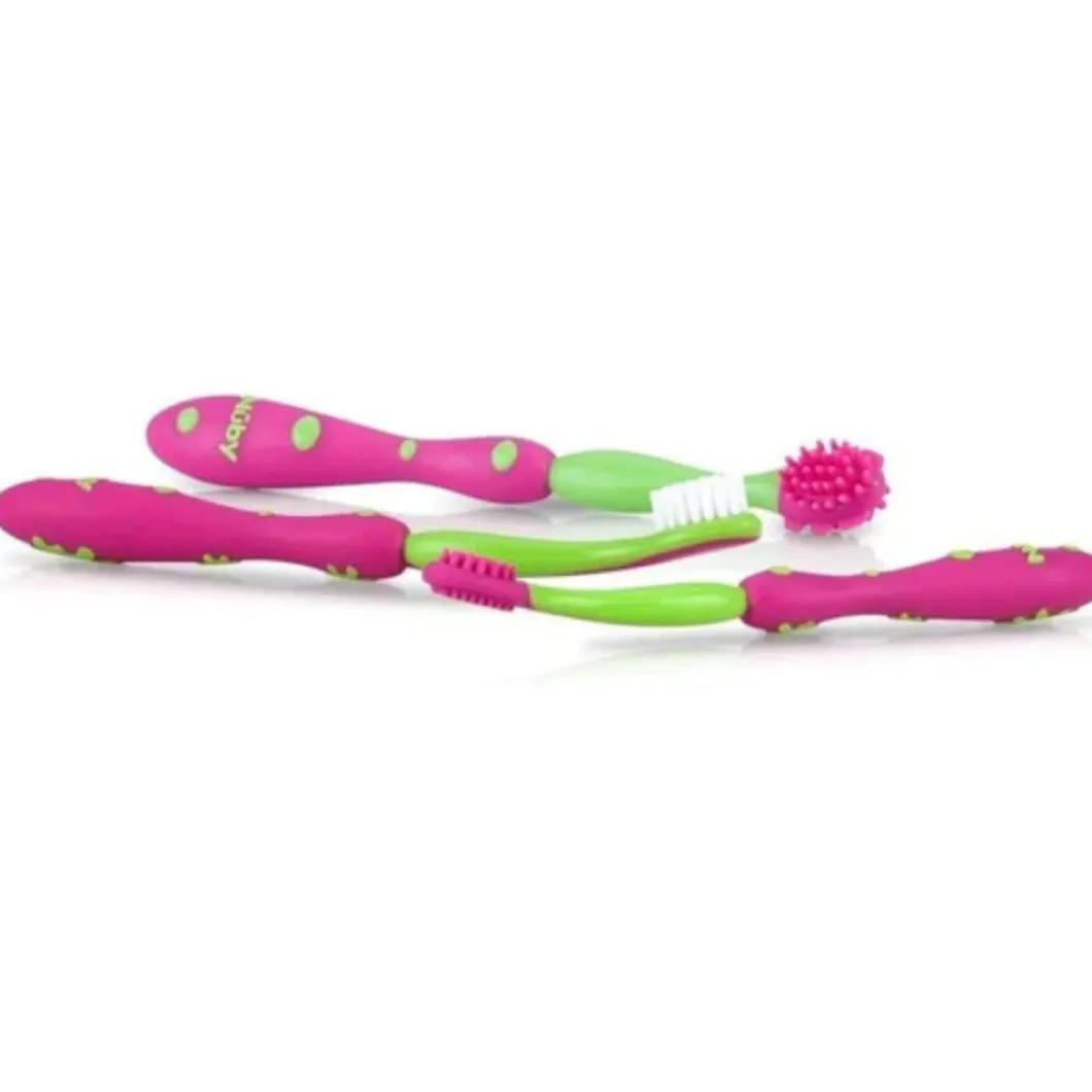 Este completo set de cuidado oral de Nuby es imprescindible para el cuidado bucal de tu bebé. Consta de 3 cepillos diseñados especialmente para cada etapa del desarrollo dental de tu pequeño.Con cerdas extra suaves que alcanzan todos los dientes, incluyendo las muelas difíciles de llegar, así como cepillos para encías y lengua, este set garantiza una limpieza completa y suave. Además, al ser libre de BPA, puedes usarlo con total tranquilidad. Asegura una buena salud bucal desde los primeros meses de vida con el Set de Cuidado Oral de Nuby.