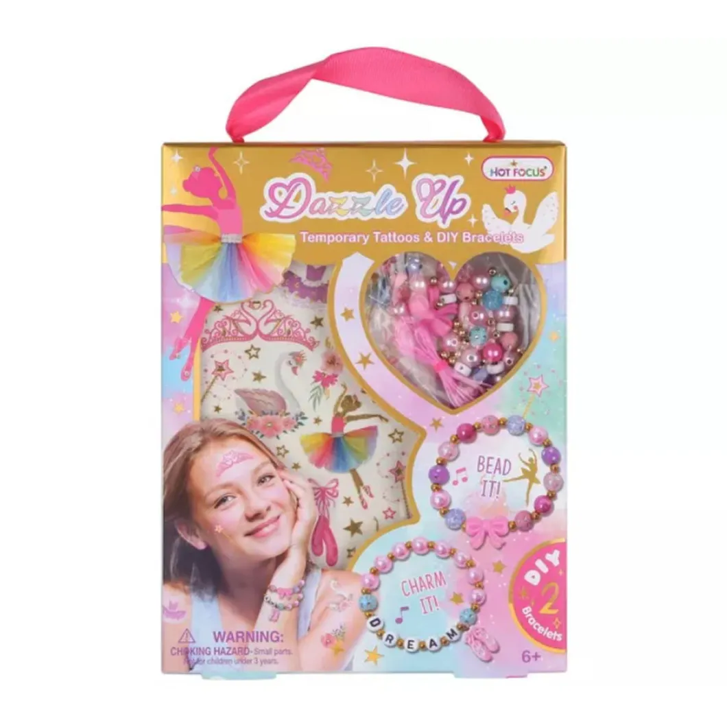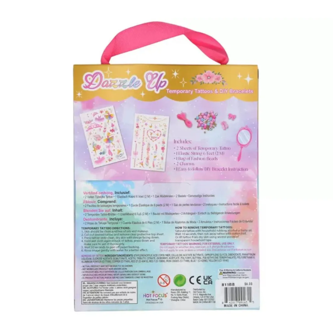 Las pulseras de tatuaje temporal y bricolaje Hot Focus Dazzle Up brindan una oportunidad fantástica para que los jóvenes amantes de la moda diseñen y hagan sus propias pulseras distintivas.