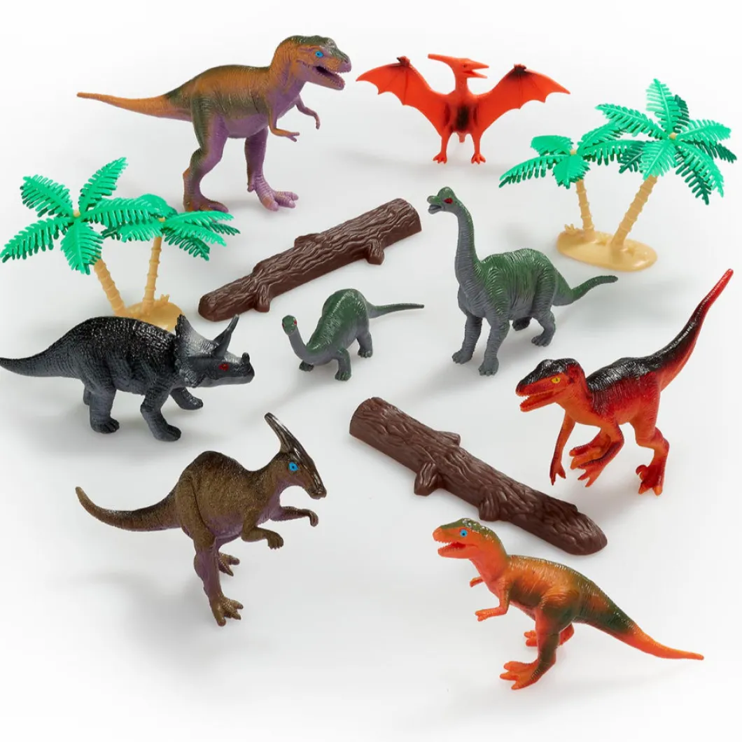 ¡Horas de diversión y descubrimiento con dinosaurios! Estos animales acompañaran a tu pequeño en hora de aventura y aprendizaje. ¡Tu hijo mantendra sus figuras en orden! Gracias a el barril con asa se puede guardar y transportar todo de forma práctica. ¡Aprender y divertirse siempre van de la mano! Su hijo aprenderá a reconocer los diferentes dinosaurios (T-Rex, triceratops, velociraptor, brachiosaurus y pterodactilo) mientras desarrolla su motricidad y su imaginación.