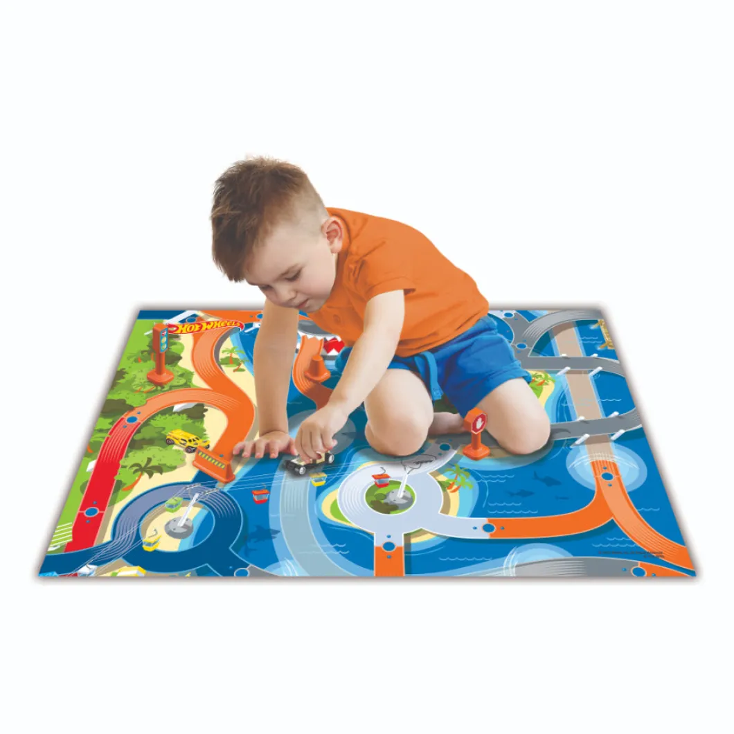 ¡Sumérgete en el emocionante mundo de Hot Wheels con el Tapete de Juego Imaginmat Original! Este tapete de 77×60 cm te transporta a un colorido entorno, donde veras recreadas pistas iconicas que te ayudaran a vivir una experiencia unica. Además, el tapete viene con un vehículo sorpresa de Ht Wheels para que la diversión comience de inmediato. ¡Ideal para horas de juego creativo y aventuras llenas de acción!