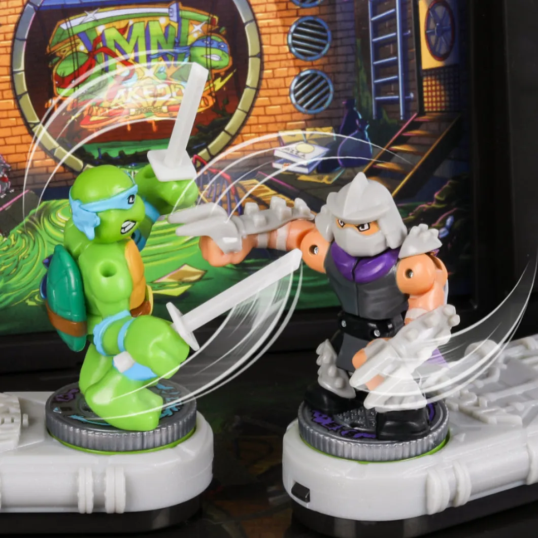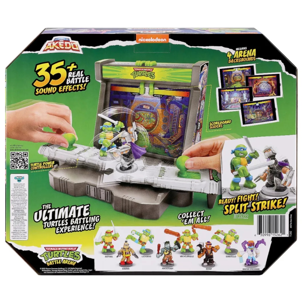 Mientras los niños se sumergen en emocionantes batallas, más de 35 efectos de sonido de batalla de las TMNT cobran vida desde la arena, agregando una capa adicional de realismo y emoción a cada enfrentamiento. Los jugadores pueden elegir entre 4 diferentes fondos de arena para dar vida a sus batallas y crear escenarios únicos para la acción.