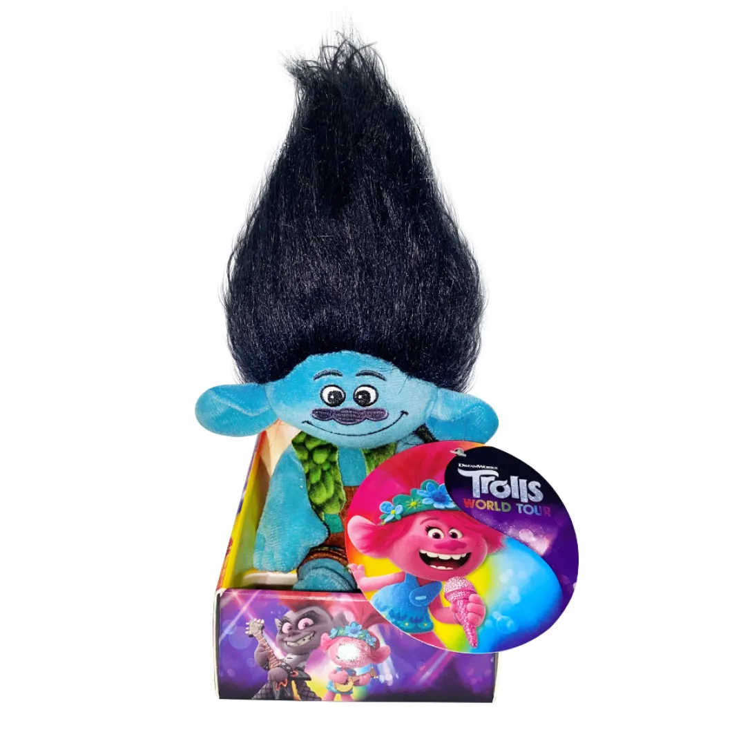 Busca a Branch y todos sus amigos del Clan Trolls, vienen directamente desde Trolls World Tour, ¡Cualquier cosa puede pasar con Trolls!, colecciónalos en su forma más suave, tiernos llenos de brillo y perfectos a la hora de jugar y abrazar en cualquier momento. Descubre el Look único de Branch con su pelo azul. ¡Busca y colecciona a todos sus amigos! Cada uno se vende por separado. Edad recomendada a partir de 3 años.