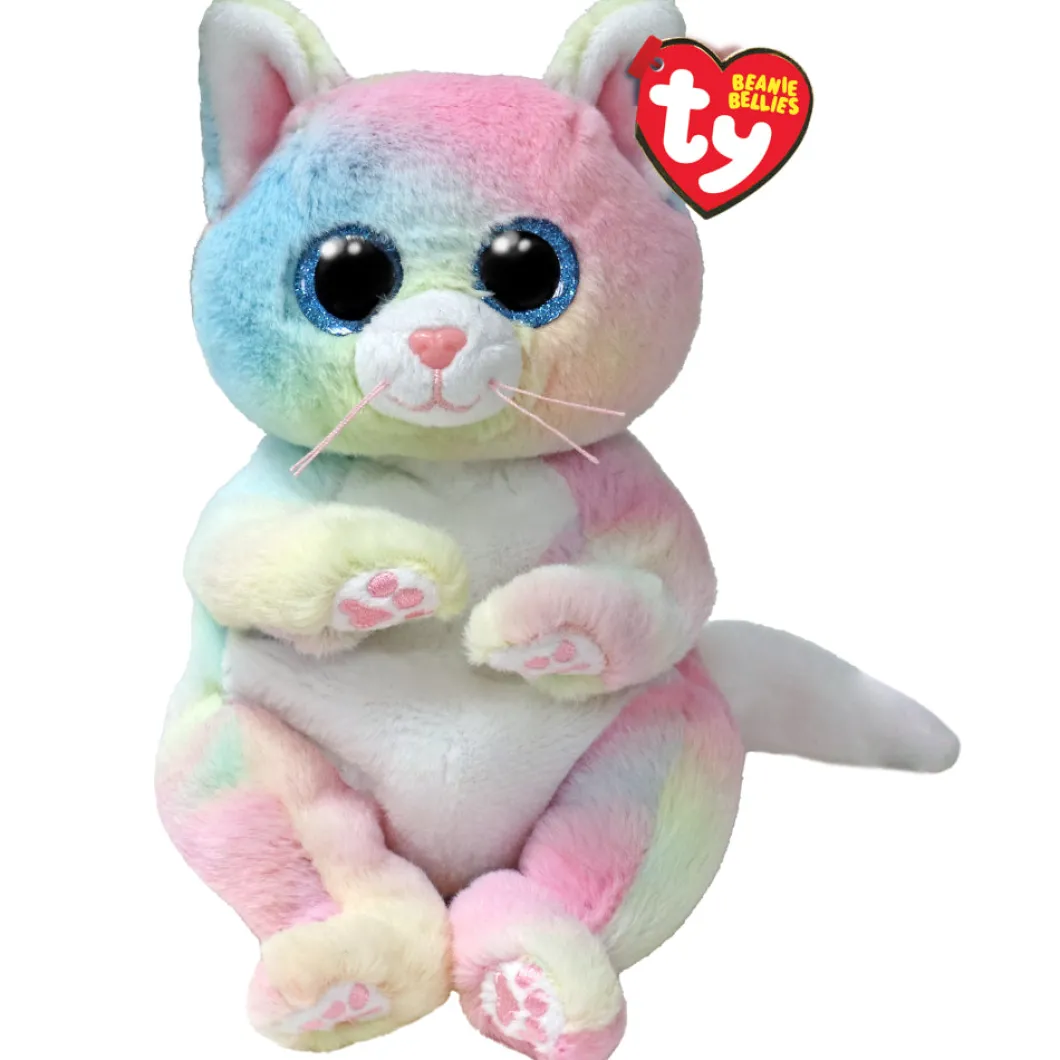 Este gatito es fabuloso, con un pelaje de arcoíris pastel y patitas rosas. Jenni puede sentarse erguida y pasar el rato todo el día. ¡Te divertirás muchísimo con este gato!