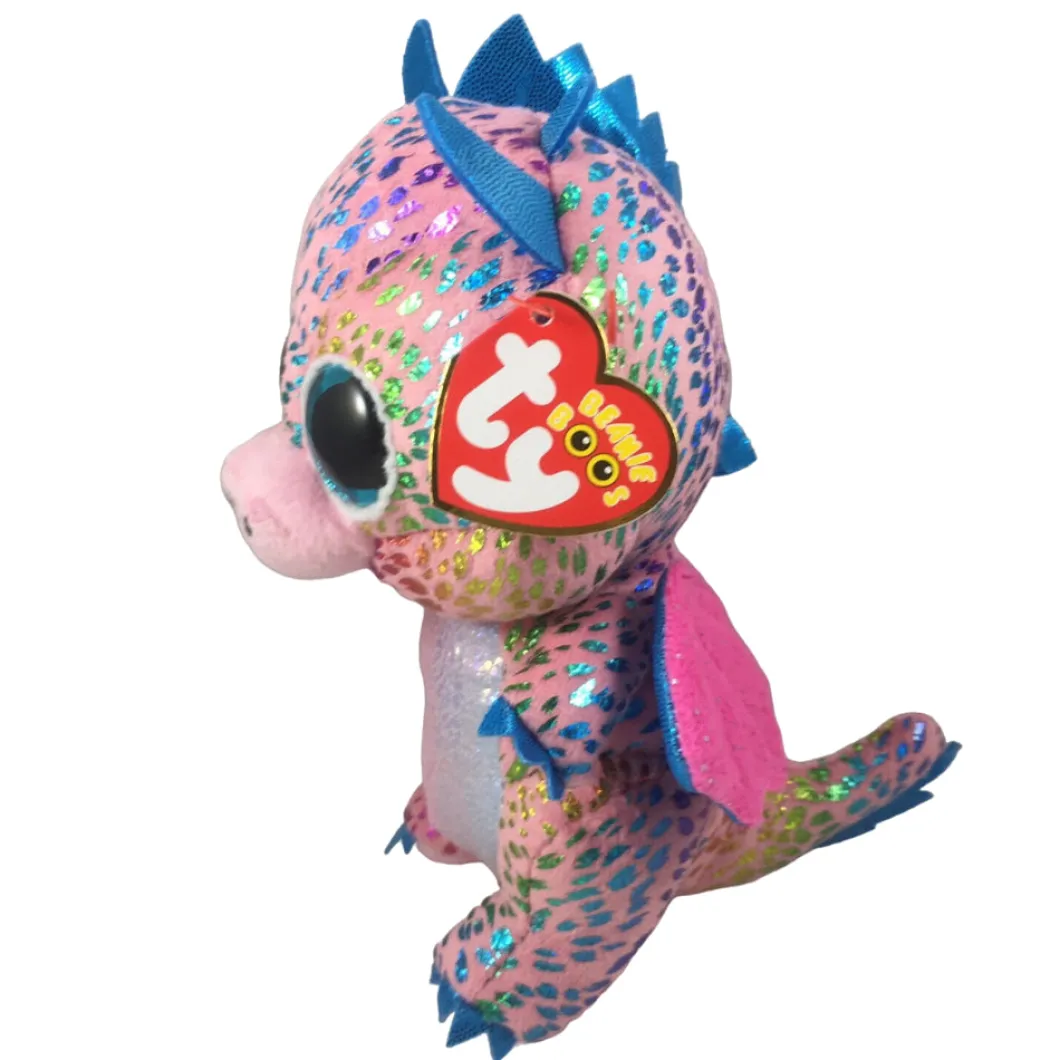 ¡Conoce a Flint, el dragón multicolor más mágico de la colección Beanie Boos! Con sus brillantes escamas en una vibrante mezcla de colores y sus alas relucientes, Flint está listo para llevarte a un mundo de fantasía y aventuras. Hecho a mano con una atención impecable al detalle, este peluche combina suavidad y encanto en cada rincón. ¡Busca su etiqueta en forma de corazón para descubrir su nombre, cumpleaños y un poema especial que lo hace aún más único! ¡Haz que Flint forme parte de tu colección y deja que su magia te acompañe!