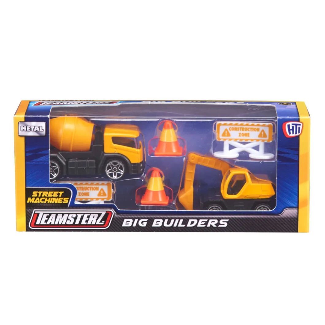 Es hora de ponerse a trabajar con el juego de grandes constructores de Teamsterz Street Machines. El regalo perfecto para cualquier constructor joven ¡ofrece horas de diversión imaginativa con vehículos! ¡Acordone el área de construcción con los accesorios para carreteras incluidos y cree algo grandioso con los dos camiones de construcción más populares en el sitio! Con una carrocería fundida a presión de alta calidad: ruedas móviles independientes y piezas móviles para una mayor diversión en el juego de roles. Ayuda al desarrollo de las habilidades sociales de tus pequeños: imaginación y habilidades motoras finas, ya que tienen el tamaño perfecto para jugar con empuje.