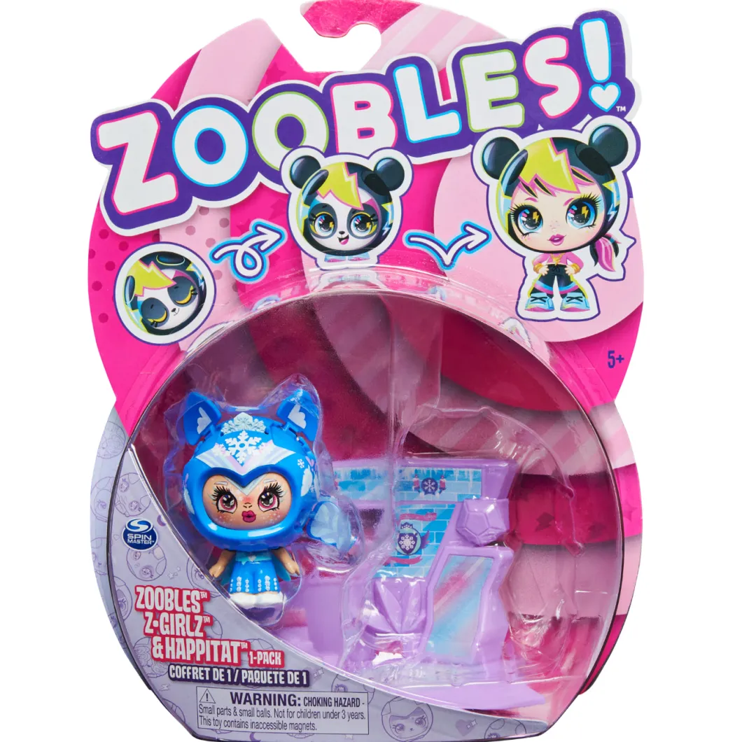 Todos los personajes son especiales, pero las Zoobles Z-Girlz llevan el hecho de ser totalmente únicas a otro nivel. La Zooble Z-Girlz Owl se transforman en dos pasos: empiezan como una bola de colores y se convierten en un animal súper bonito cuando las haces rodar en su Happitat. Sólo tienes que dejar caer o hacer rodar la bola sobre el punto central del Happitat y tu Z-Girl cobrará vida por arte de magia, revelando un animal Zoobles en su interior. A continuación, acaricia y presiona la cabeza de tu figura para volver a transformarla en la moderna Zoobles Z-Girl. Colecciona a todas las Zoobles Z-Girlz, Unicorn, Fish, Panda, Bunny, Deer, Kitty, Llama, Owl, Puppy, Butterfly, Elephant y Narwhal, (se venden por separado).Cada muñequita Zoobles Z-GirlZ tiene un estampado atrevido y colores brillantes.
